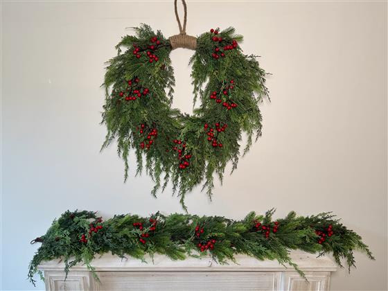 Create a classic British Christmas look with this luxury red berry garland. Crafted from lifelike greenery, vibrant berries and wicker, it’s flexible, full, and reusable year after year.