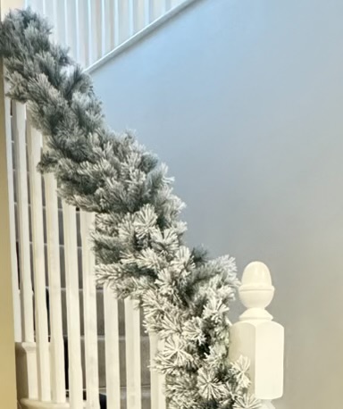 An extra thick and full luxury faux garland created using multiple style faux frosted pine with snowy accents.
