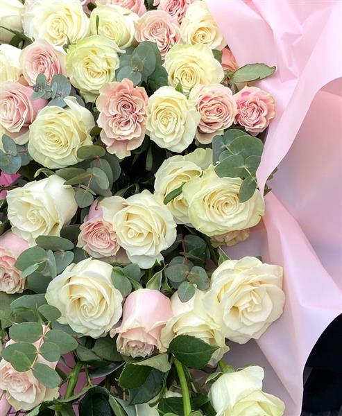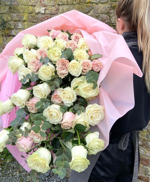 Blush pink and ivory long stemmed large headed roses