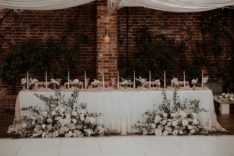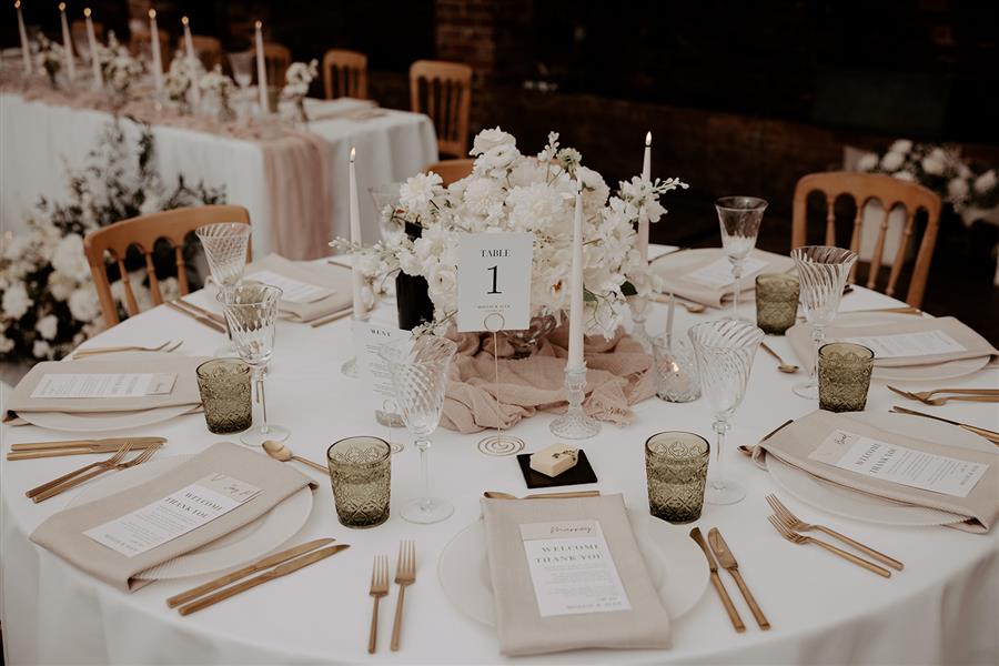 Mollie and Alex's elegant wedding at Northbrook Park followed a sophisticated white, ivory and champagne colour scheme, with accents of black throughout which looked absolutely stunning.