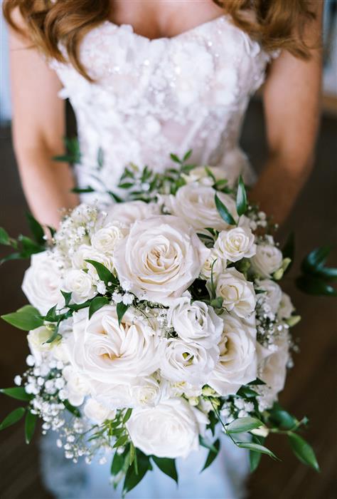 Paula and Mathew chose a classic, elegant colour scheme of ivory and deep green for their special day at Cooling Castle Barn.