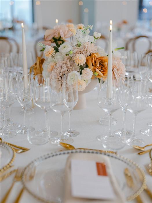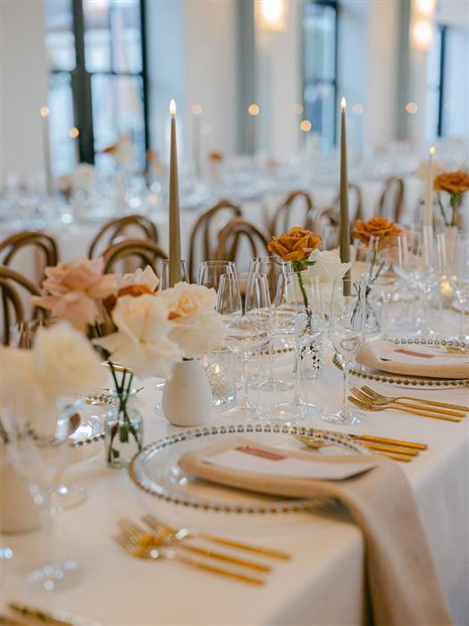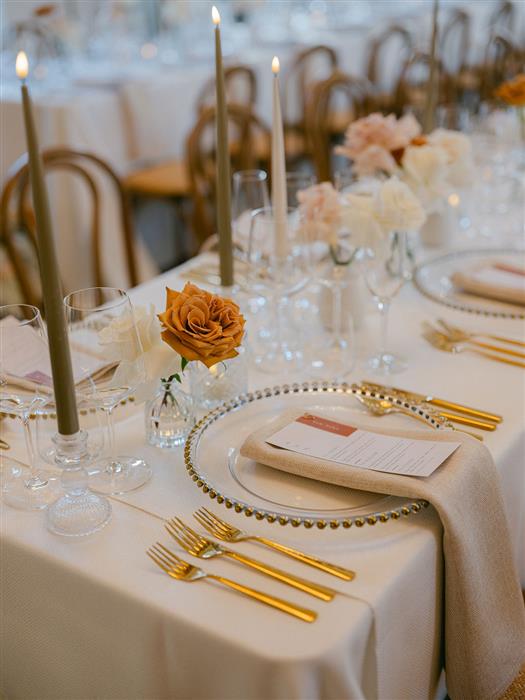 To elevate their table scape, Rosie and Jack also hired our gold beaded charger plates, gold cutlery and luxury napkins to create a beautifully elegant look.